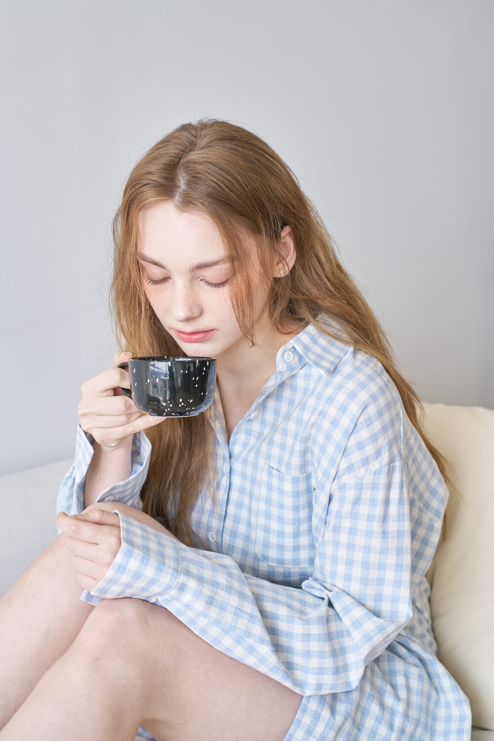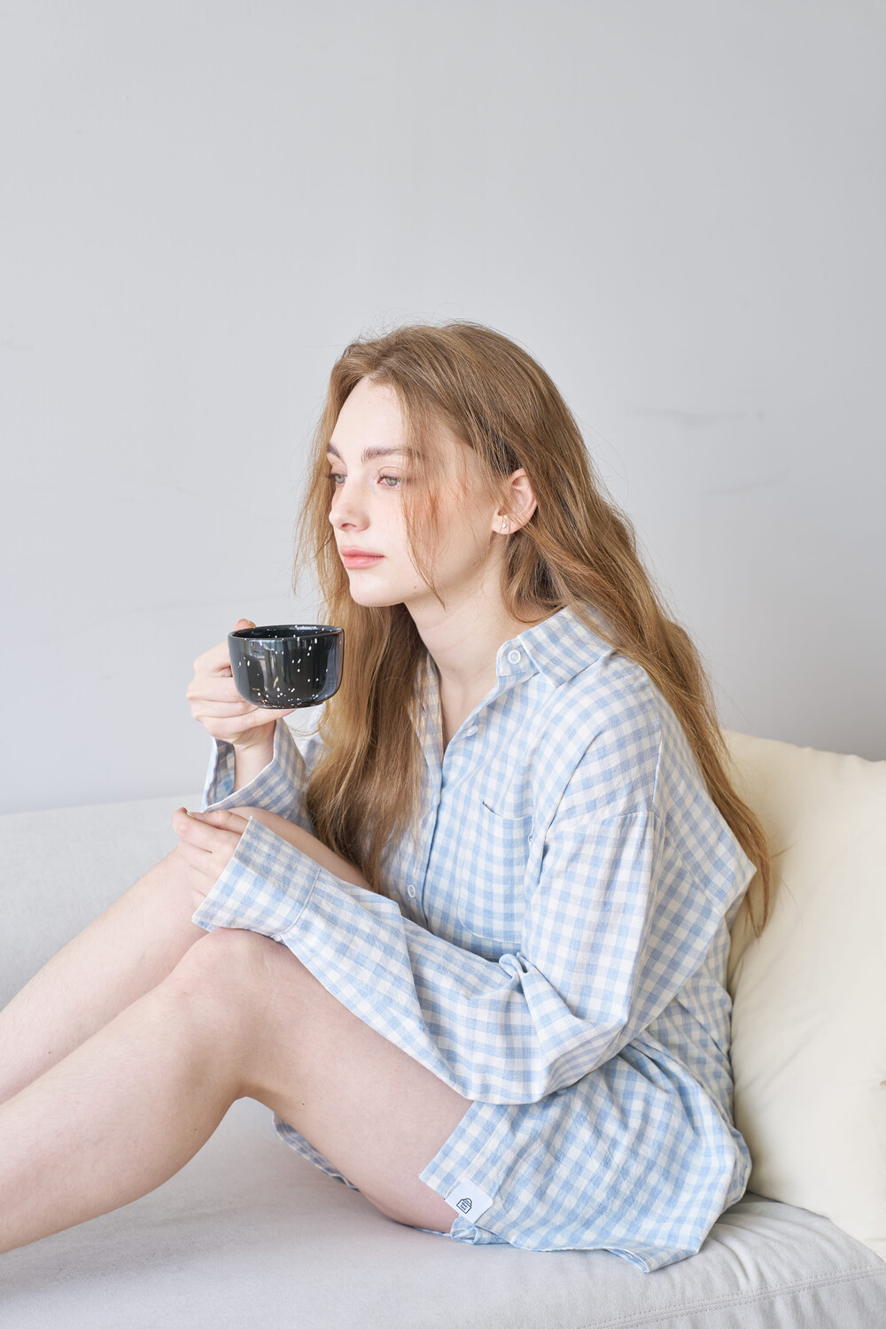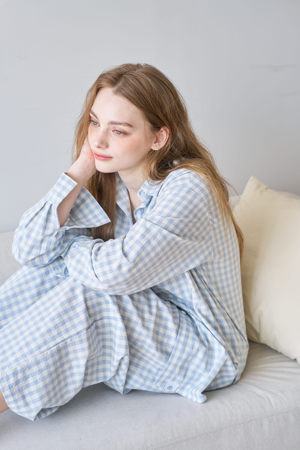 memoir pajama sky blue check set