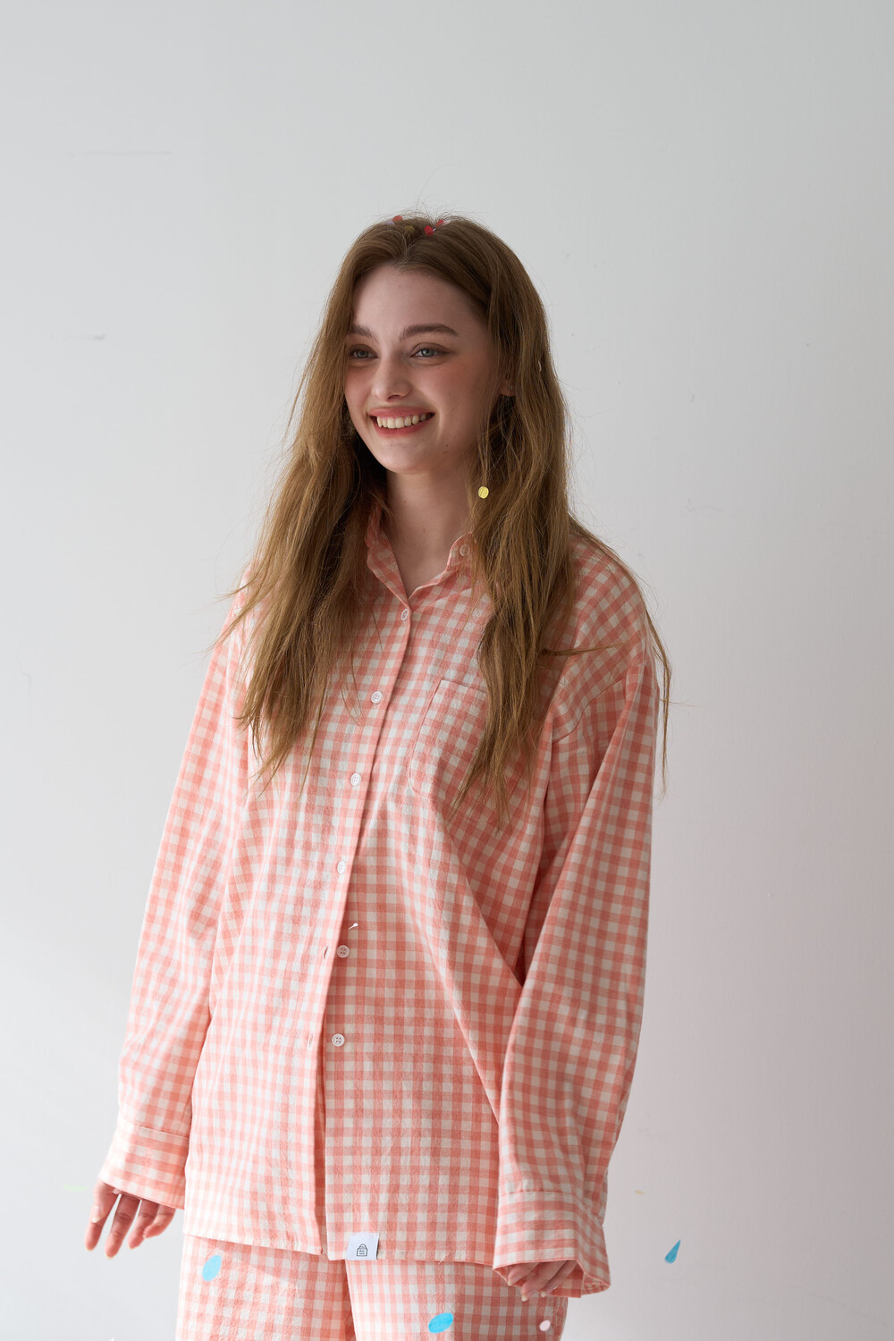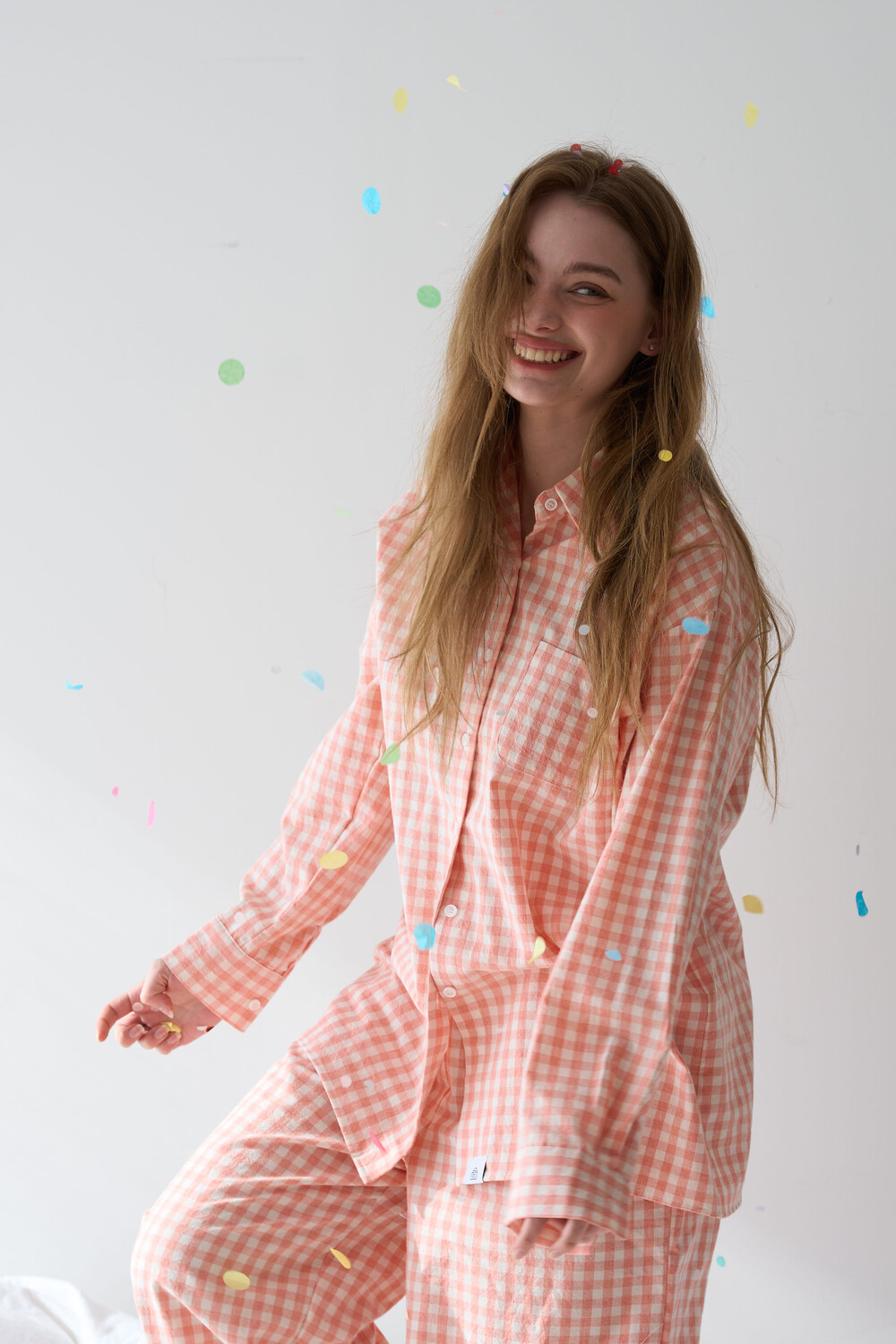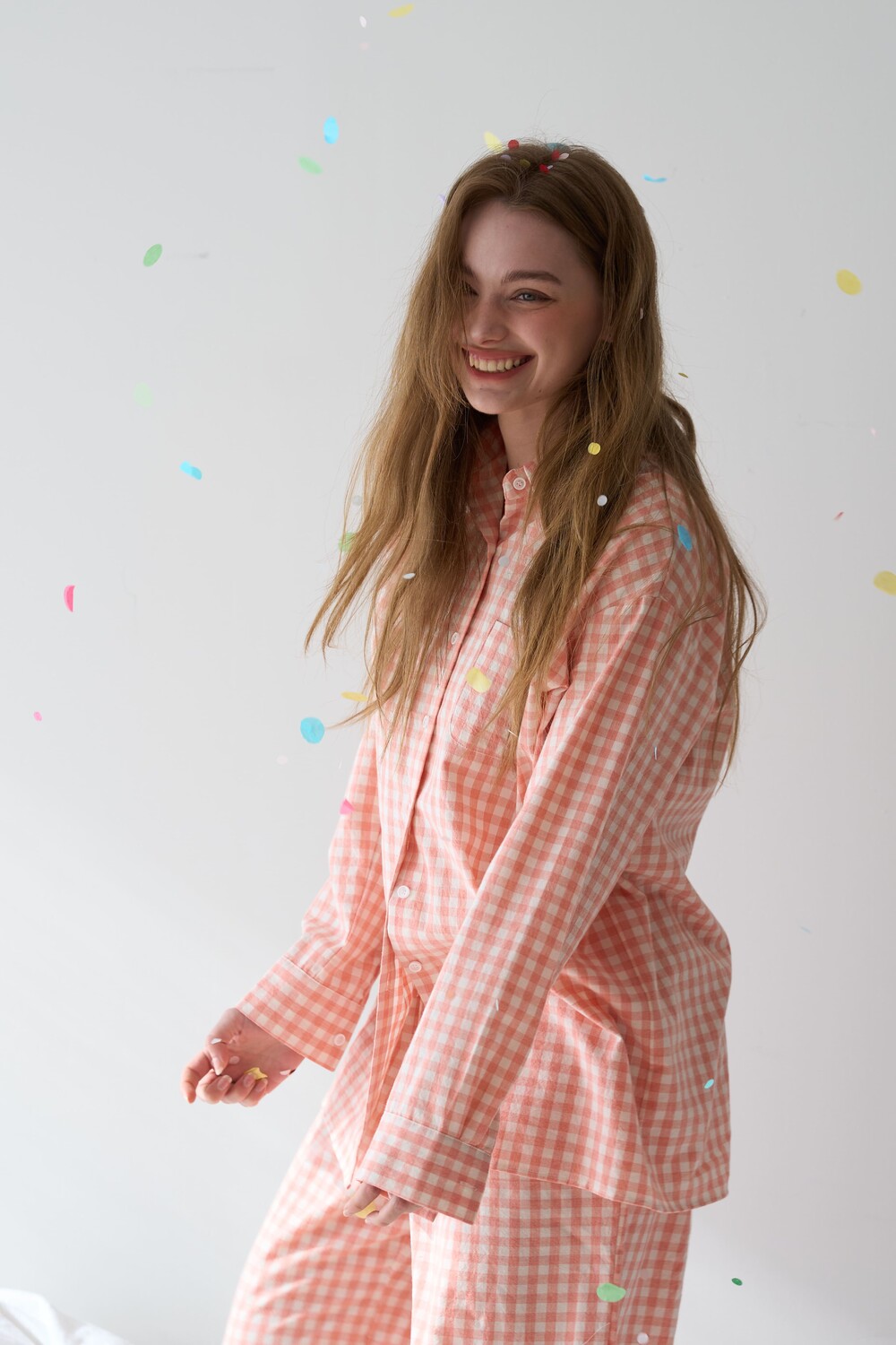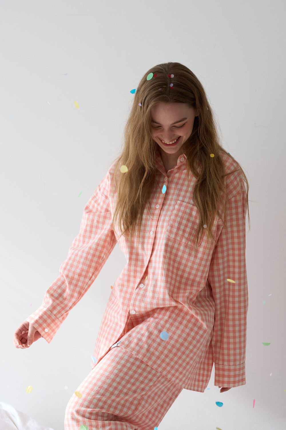 memoir pajama orange pink check long pants