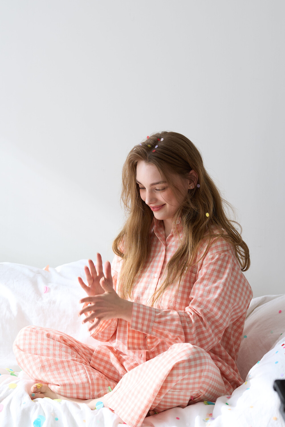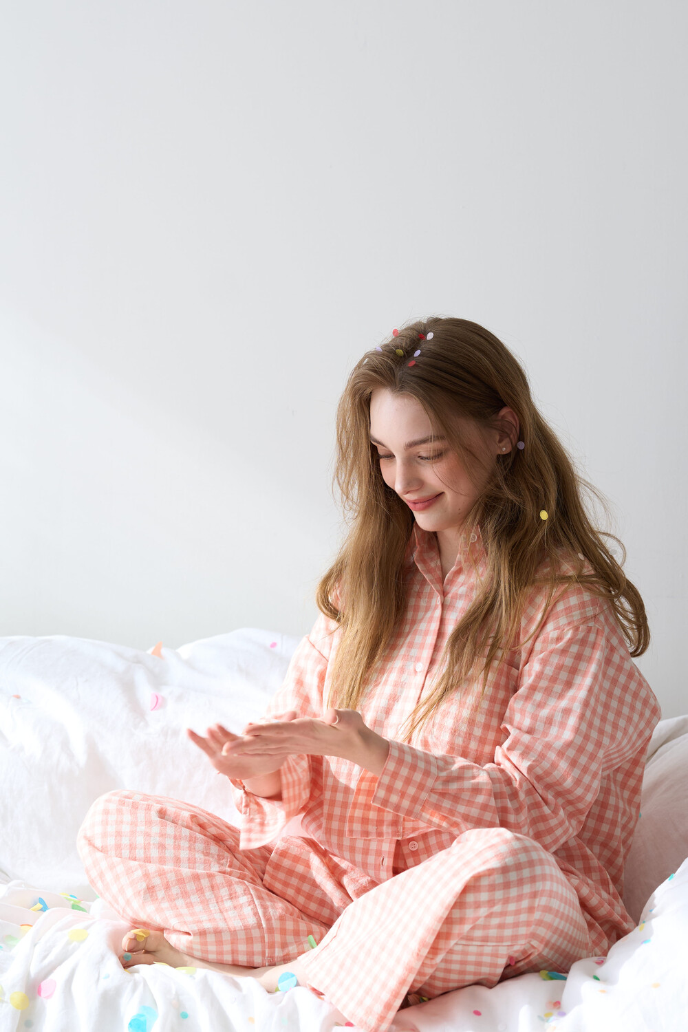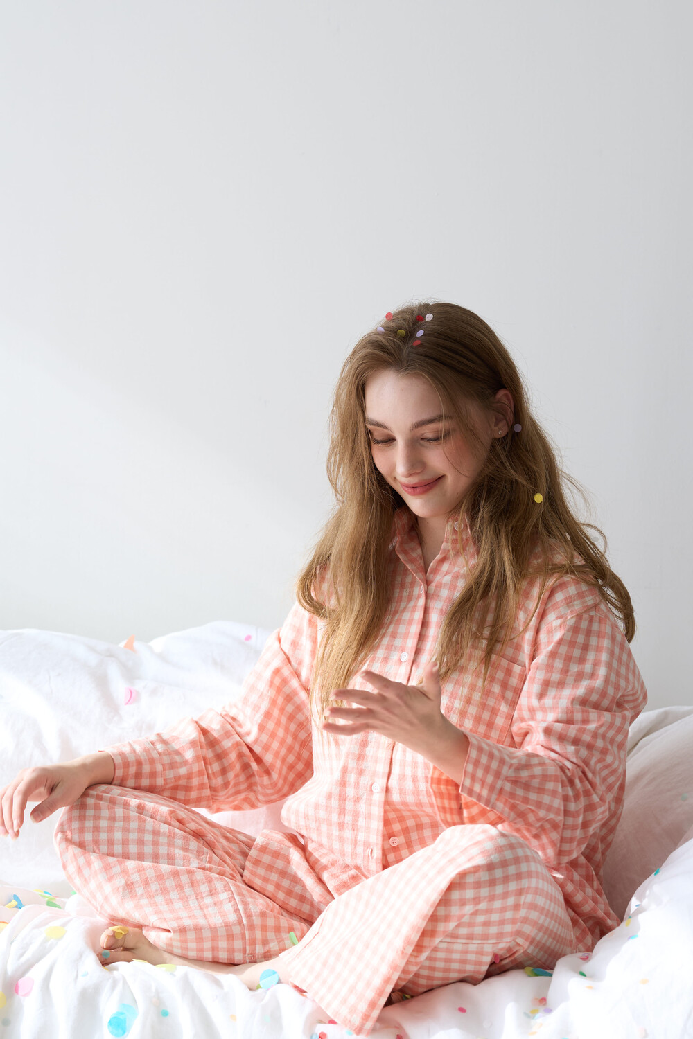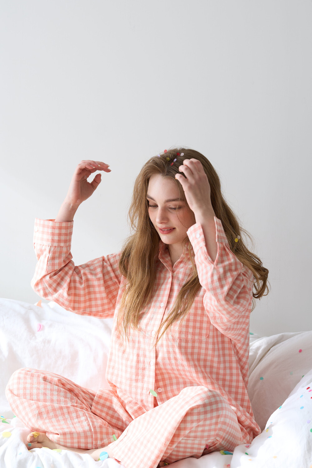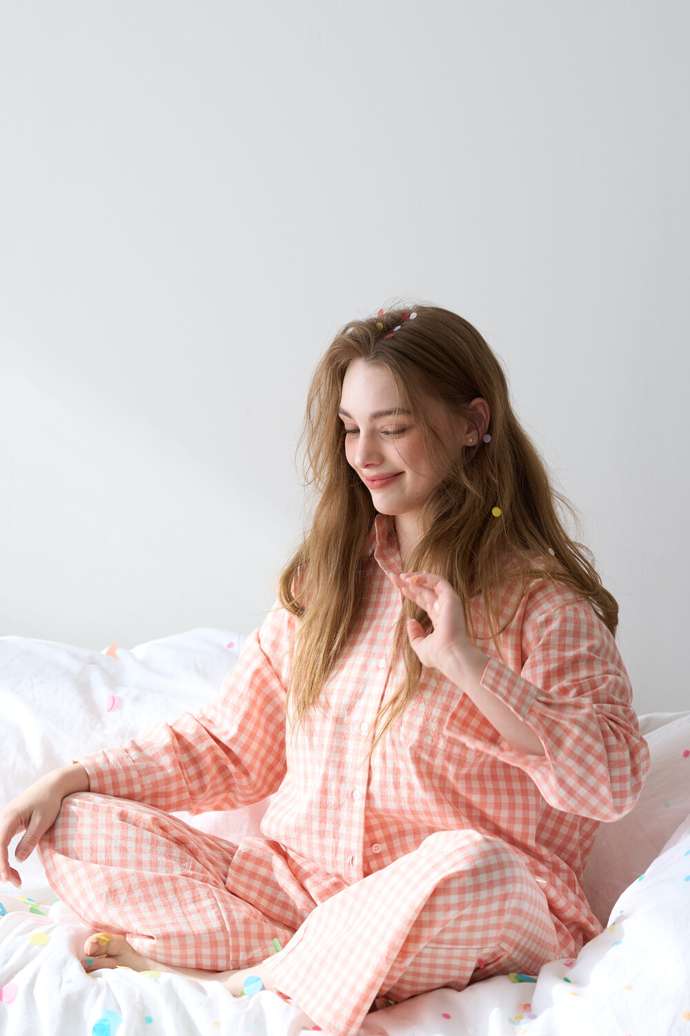 memoir pajama orange pink check long pants